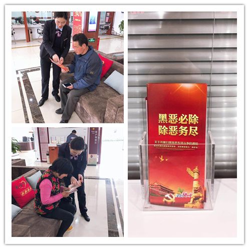 為認真貫徹落實《中國銀保監(jiān)會關(guān)于銀行業(yè)和保險業(yè)做好掃黑除惡專項斗爭有關(guān)工作的通知》(銀保監(jiān)發(fā)〔2018〕45號)、《中國銀保監(jiān)會江蘇監(jiān)管局關(guān)于開展轄內(nèi)銀行業(yè)和保險業(yè)掃黑除惡集中宣傳活動的通知》(蘇銀保監(jiān)發(fā)〔2019〕58號)文件精神,根據(jù)徐州監(jiān)管分局和省聯(lián)社的工作要求,邳州農(nóng)商銀行持續(xù)開展掃黑除惡專項排查及宣傳活動。