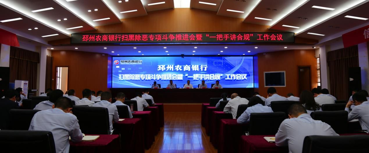 根據(jù)習近平總書記關于掃黑除惡專項斗爭的重要指示精神和監(jiān)管部門、省聯(lián)社黨委、市委的部署要求,2019年5月28日,邳州農(nóng)商銀行召開掃黑除惡專項斗爭推進會暨“一把手”講合規(guī)工作會議。